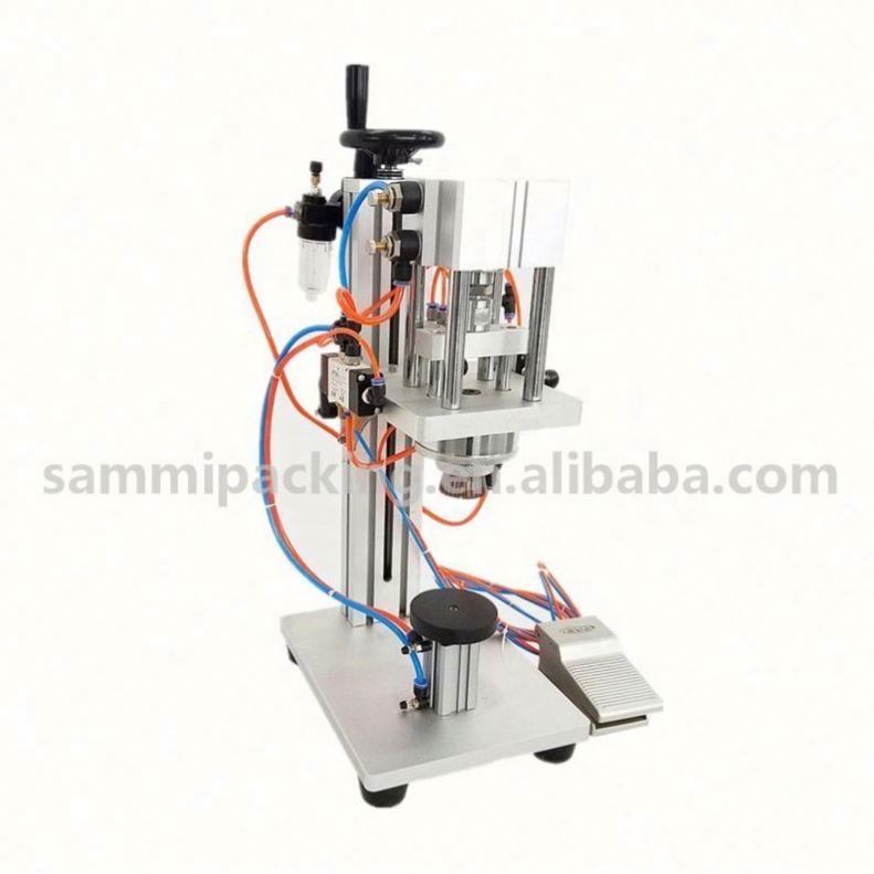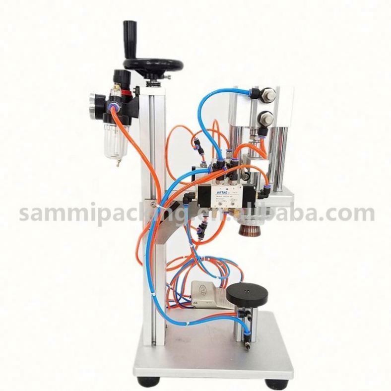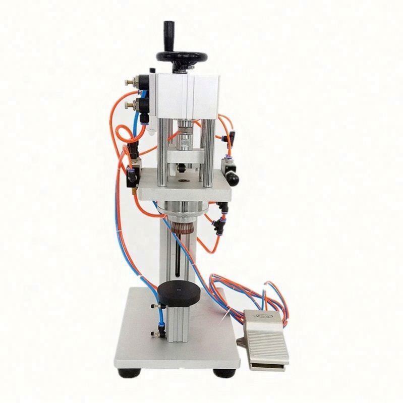 香水圧着機は、クランプタイプのキャップ閉鎖機の一種です。スプレータイプのキャップのキャップ閉鎖に適しています。機械はクランプを使用してキャップを閉じ、ボトルの口の端に固定します。機械全体は、機械本体、テーブル面、クランプ装置、および空気圧制御システムで構成されています。