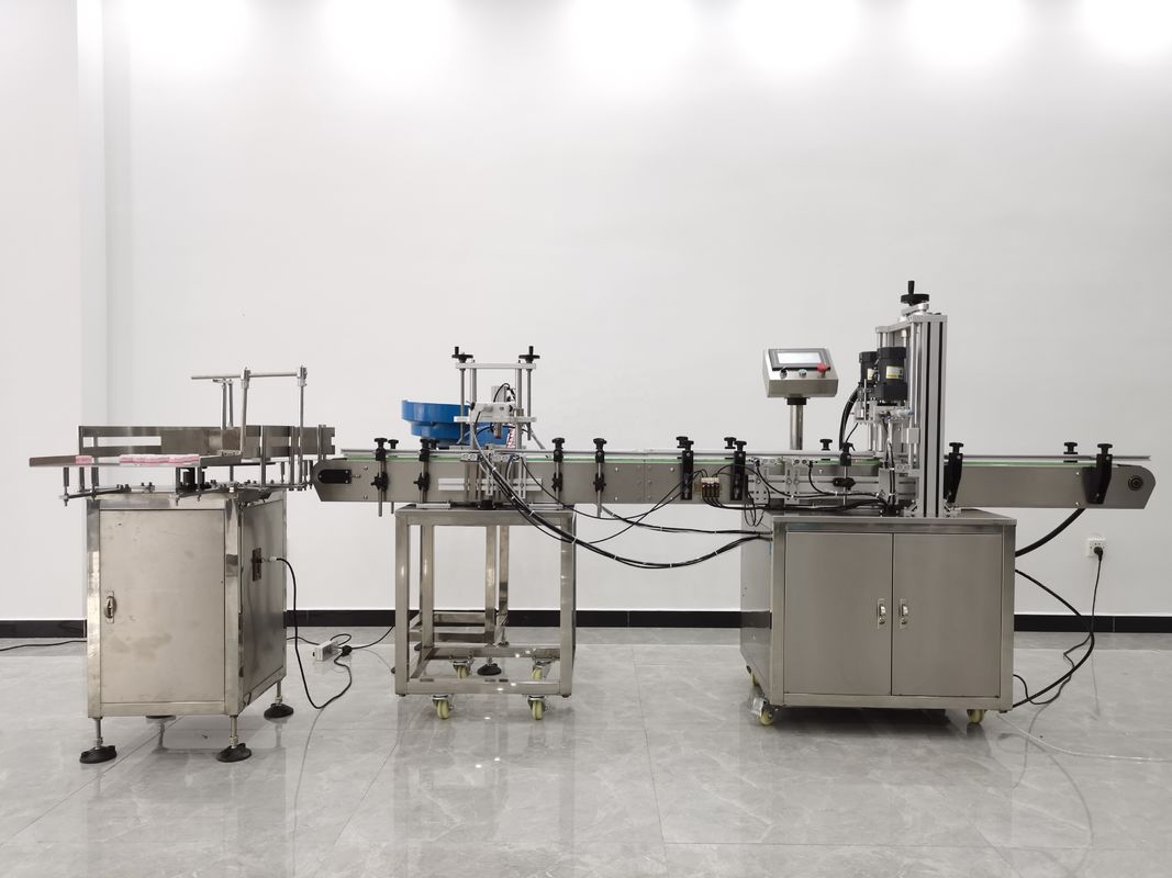 ボトル供給テーブルによるボトルの供給---自動製品充填---自動キャップの選別と供給---自動キャップのキャッピング---自動完成品の提供---自動ボトルのラベリング